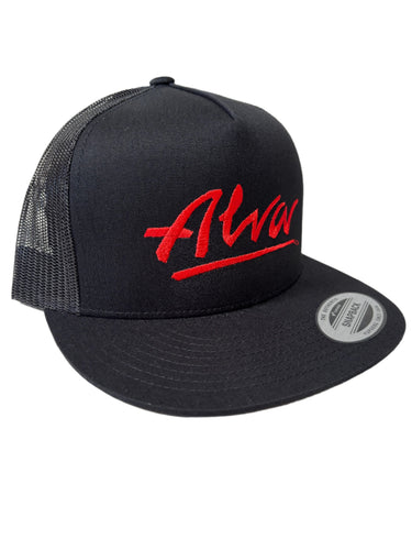 ALVA BLACK MESH SNAP BACK HAT WITH RED EMBROIDERED OG LOGO