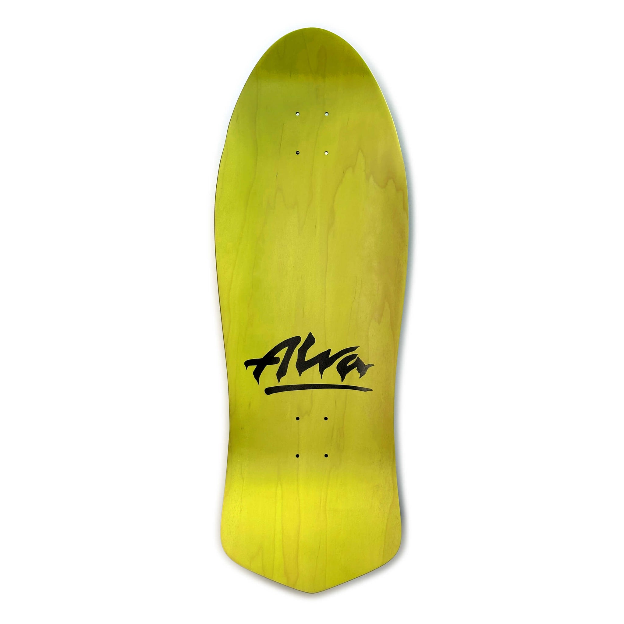 Designed in the 1980s by TA and Mondo, the Alva "dolphin" deck soon became the signature model of the Alva Posse team. We are excited to re-introduce a limited number of our iconic "dolphin" decks featuring Mondo's original artwork. Hand made in CA, and hand screen printed.
