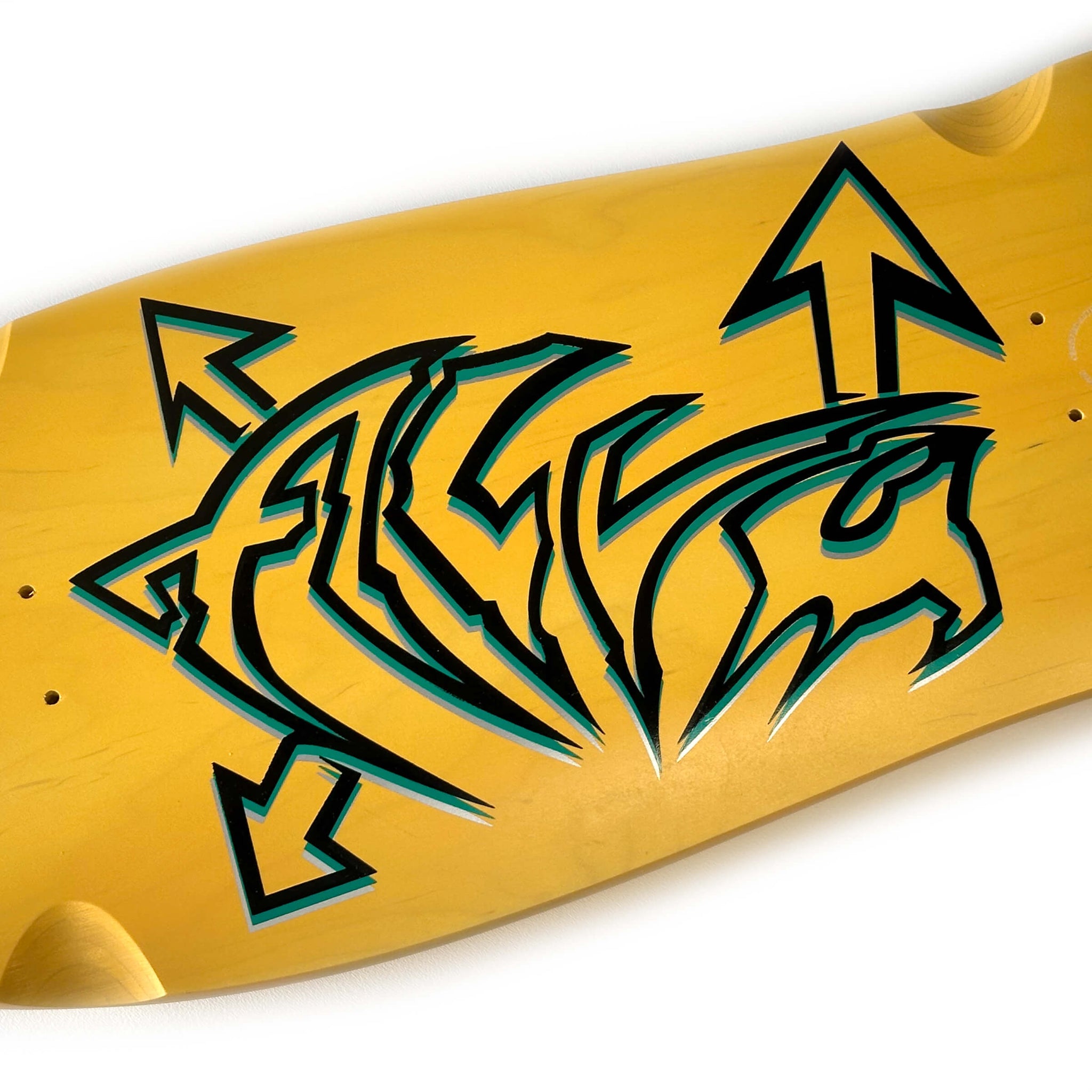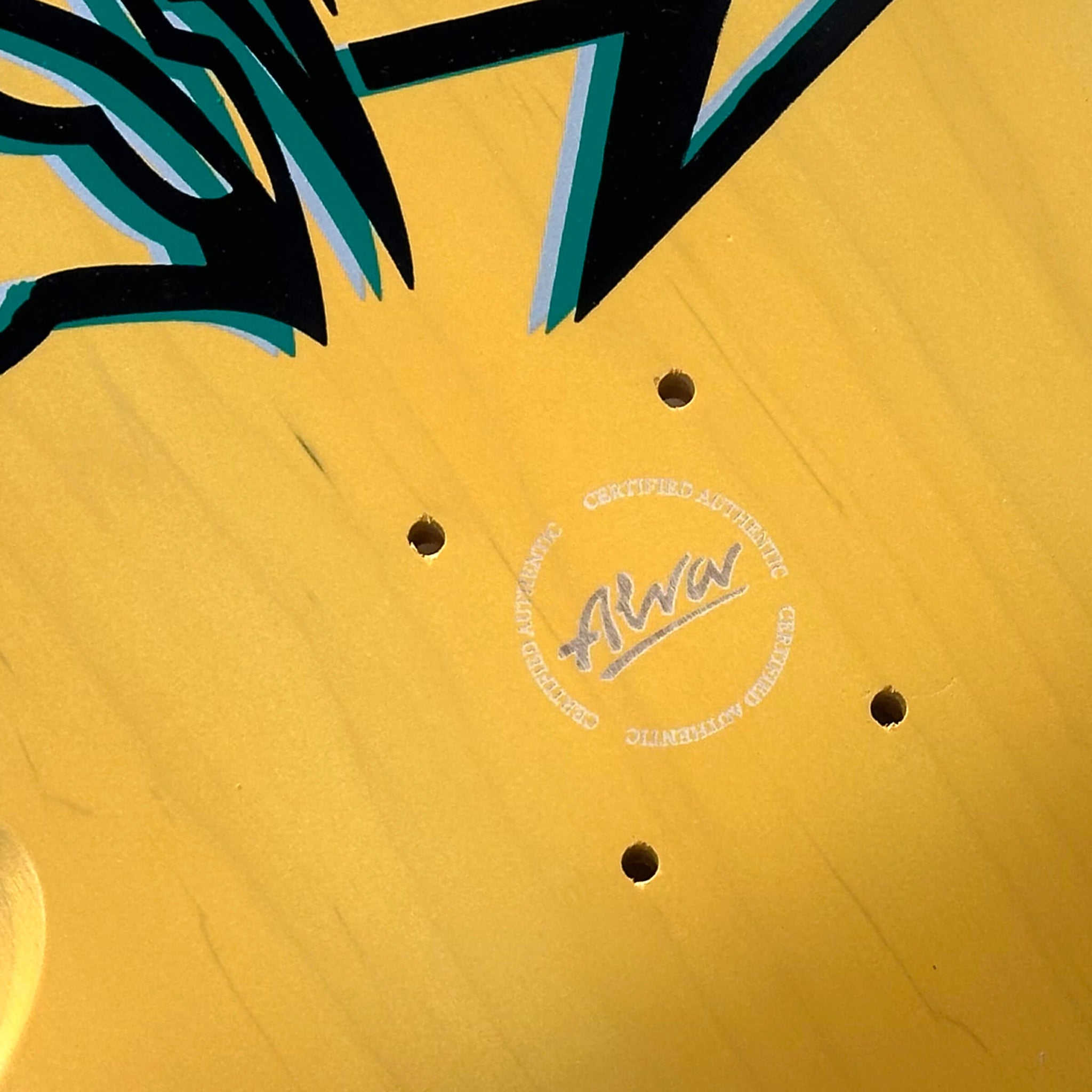 Designed in the 1980s by TA and Mondo, the Alva "dolphin" deck soon became the signature model of the Alva Posse team. We are excited to re-introduce a limited number of our iconic "dolphin" decks featuring Mondo's original artwork. Hand made in CA, and hand screen printed.