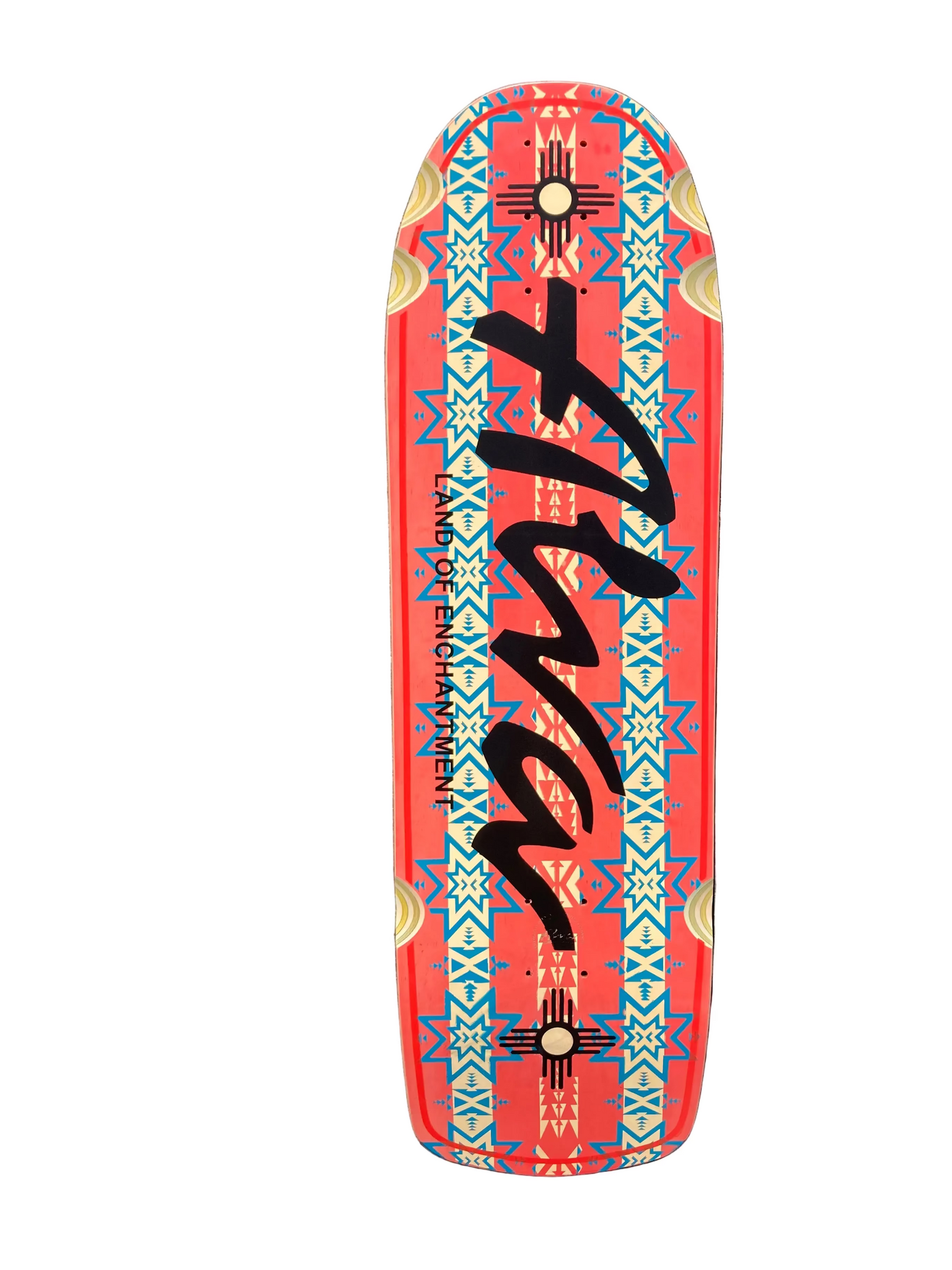 Inspired by the ditches of New Mexico and the American Southwest, this limited edition deck is handcrafted and hand screen printed in the USA. Less than 20 of this color way has been hand produced in every way. Each one a work of art, ready to rip.