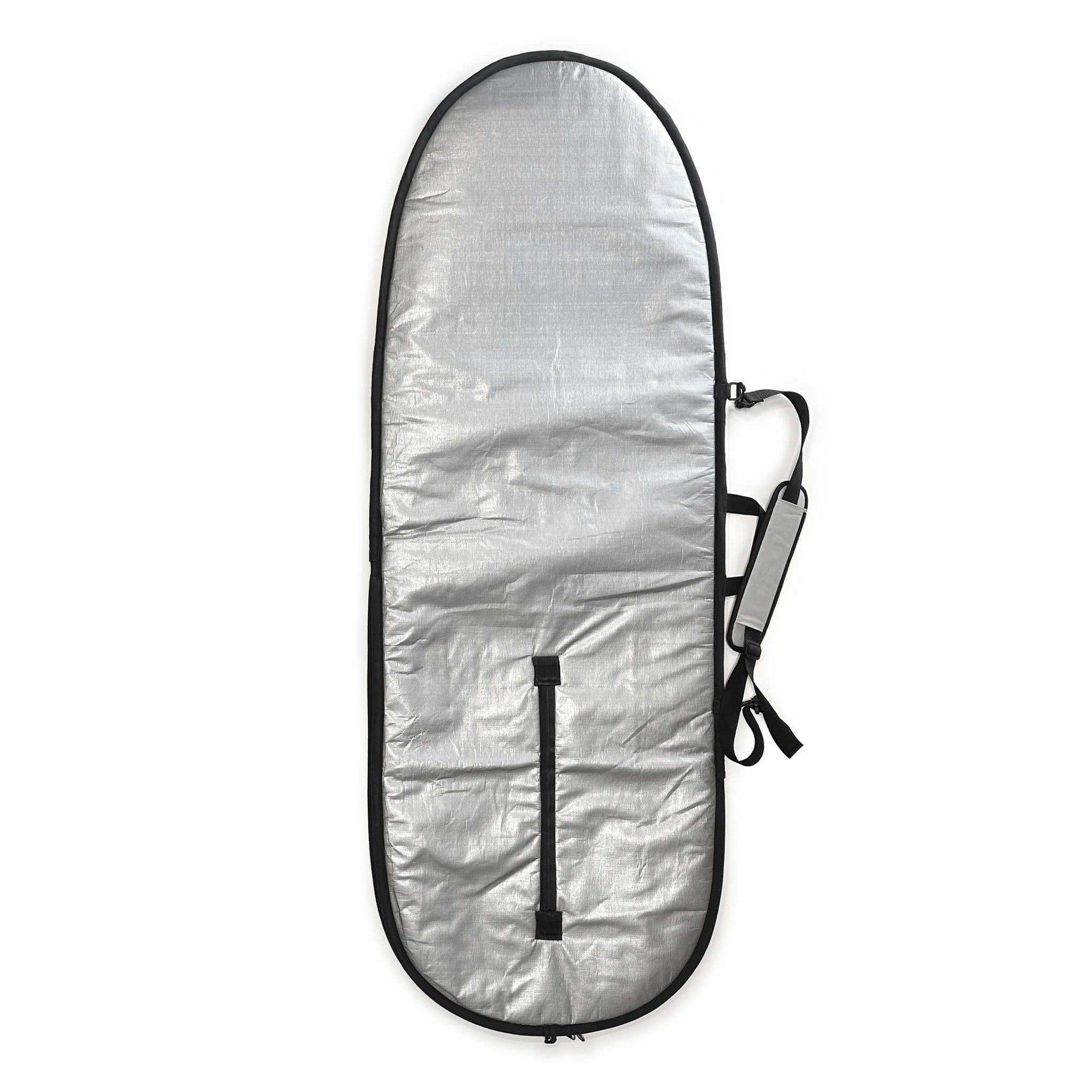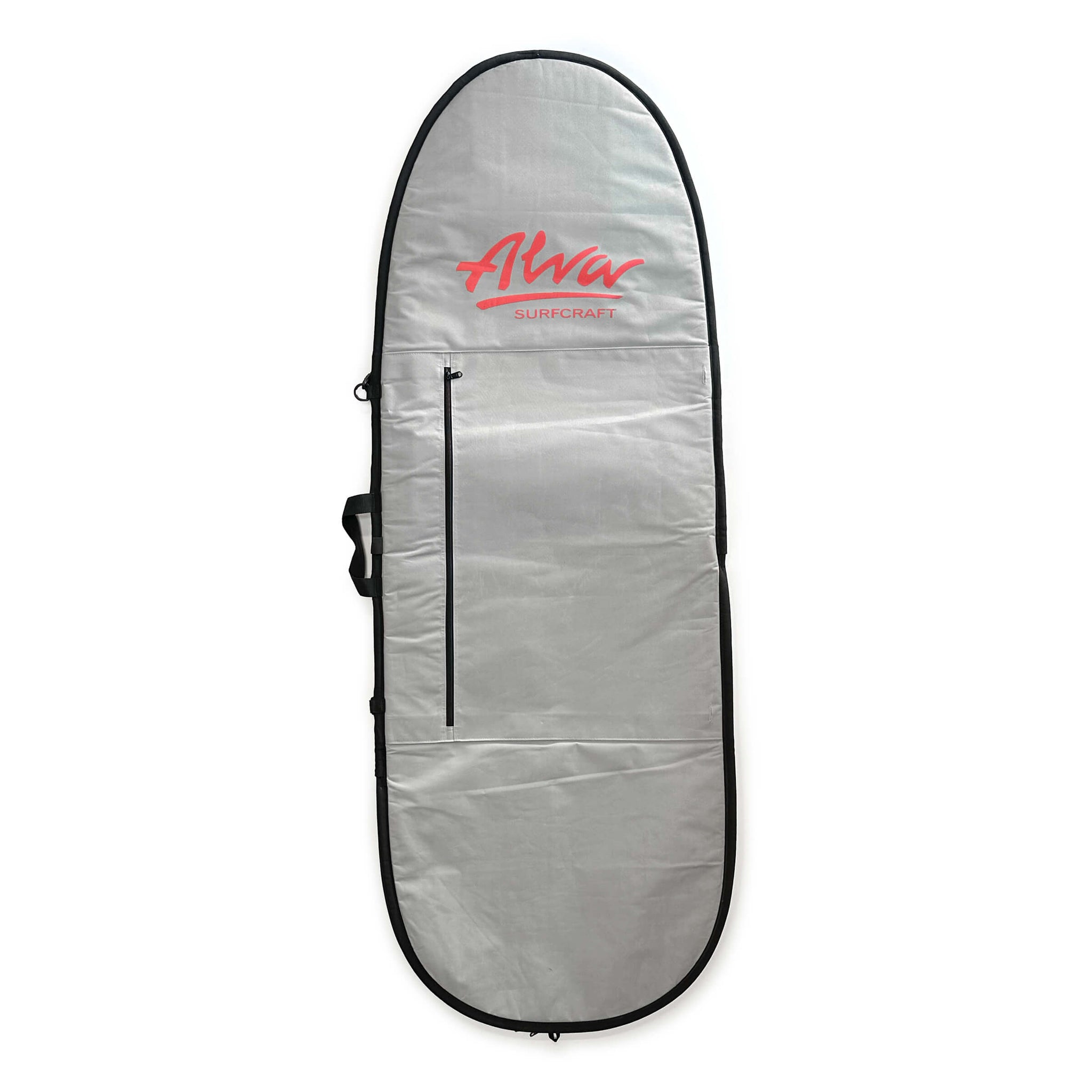 Construction: Our Heavy Duty Board Bags are constructed with a 1/4" closed cell packing foam that is sandwiched between two layers of material.  On the top is a 600d Cordura that is able to withstand the harshest of conditions.  On the bottom is a heat resistant, UV coated heavyweight tarpoline, with 600d cordura nose and tail patches. On the inside is a waterproof tarpoline lining with a padded rail guard for protection from the zipper.