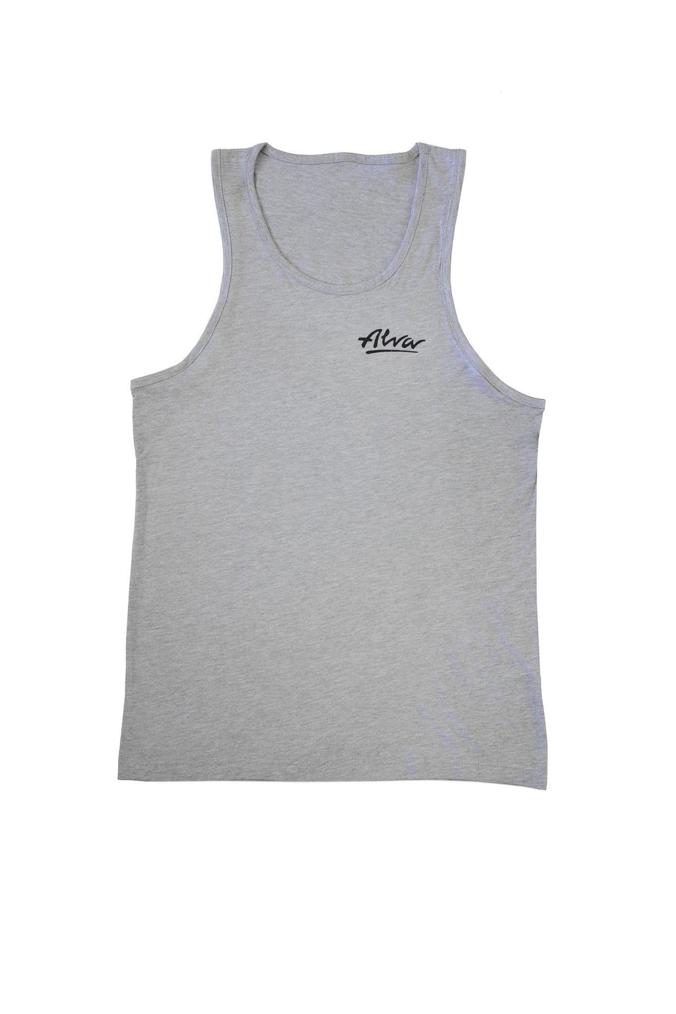 Alva heather grey cotton and poly tank top with black OG logo.