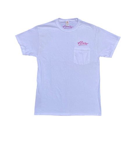 ALVA OG Logo Pocket T- White with Magenta OG Alva logo on pocket