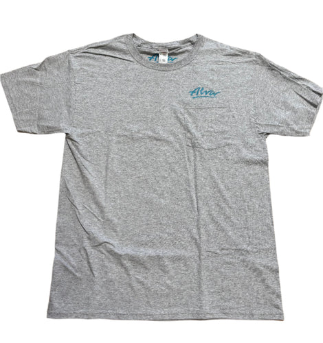 ALVA OG Logo Pocket T- Heather Grey with Aqua OG Alva logo on pocket