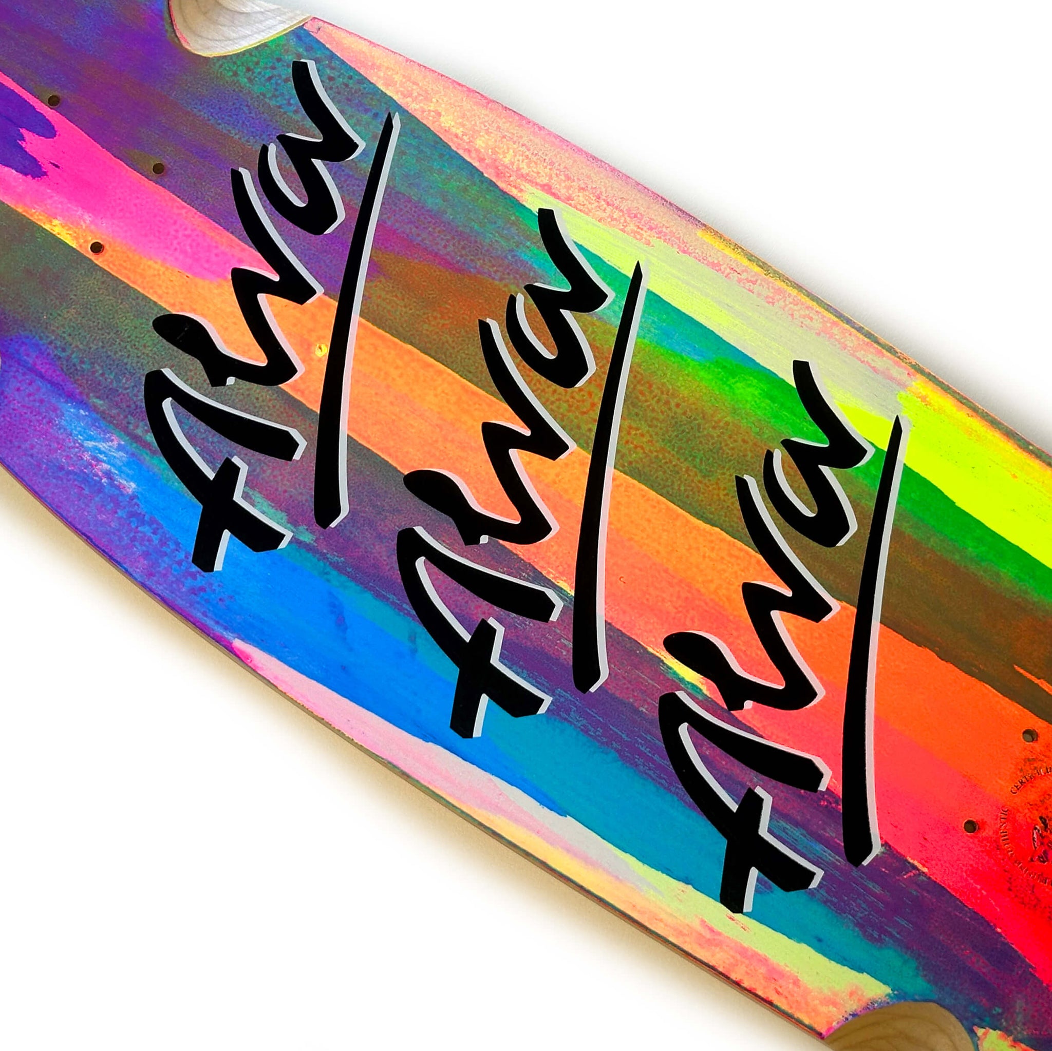 Originally launched in 1980, Alva's TRI-LOGO deck quickly garnered recognition as an instant classic in the skateboarding community. After much anticipation, this iconic deck has now been faithfully reproduced to celebrate its legacy. The latest addition to the lineup features a vibrant hand sprayed fruit fade, offering a fresh and eye-catching look for both collectors and skateboard enthusiasts alike. Whether you're riding it or displaying it, this deck is a must-have for anyone who appreciates the history of skateboarding.